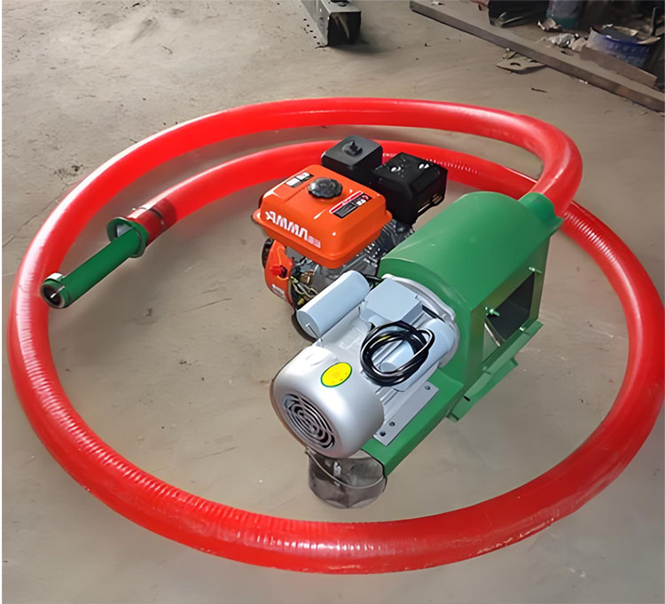 柔性柴油驅(qū)動螺旋輸送機工作時,先啟動柴油發(fā)動機,為整機提供動力,動力通過傳動系統(tǒng)傳遞驅(qū)動位于柔性軟管內(nèi)的螺旋彈高速旋轉(zhuǎn),當需要輸送的物料從進料口加入后,旋轉(zhuǎn)的螺旋葉片會推動物料沿著輸送管道向前移動,直至出料口卸料。管道是柔性的,可以在一定范圍內(nèi)靈活調(diào)整出料口的方向和位置,滿足不同的裝卸場景。