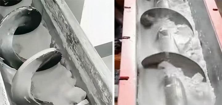 | 脫硫石膏粉 | 粒徑 60-100 目,濕度 8%-15%,易結塊,粘性較強 | LS250、LS315、LS400(帶防堵結構) | 2-25 | 8-50 | 螺旋葉片配耐磨襯板,選用低速大螺距設計,轉速 20-40r/min,加裝清堵裝置和倉壁振動器 |